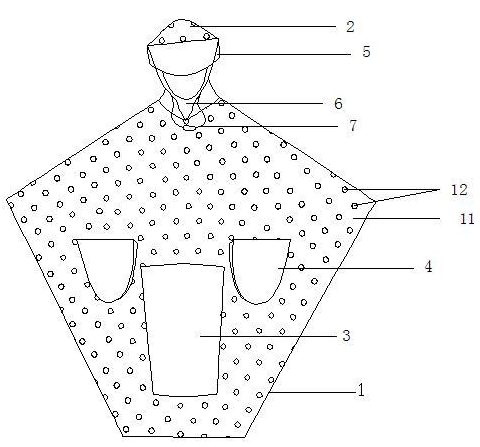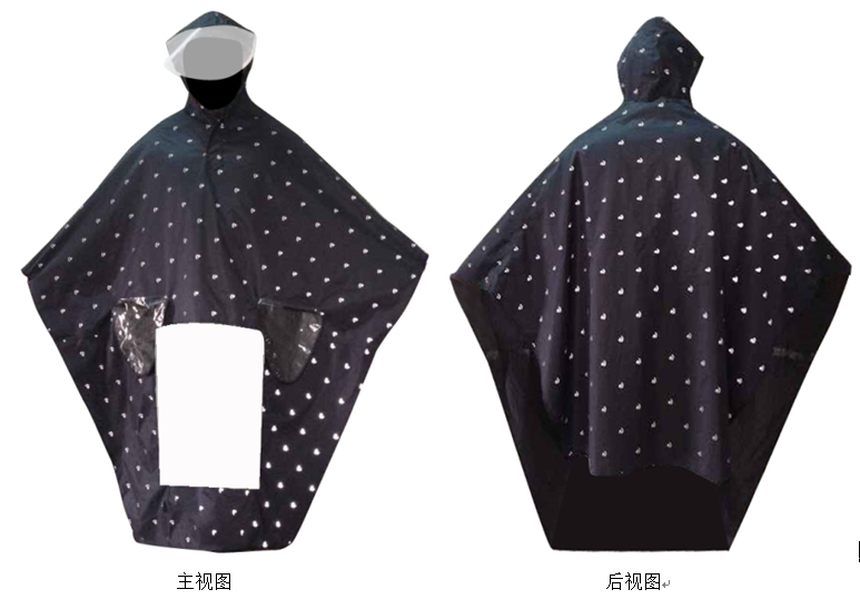 花式反光雨披,包括雨披本體、領(lǐng)口、帽子。