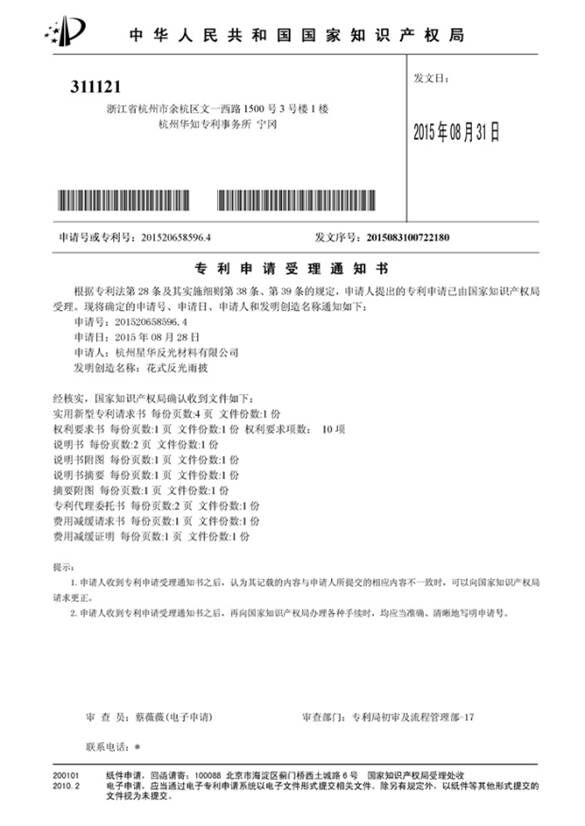 專利受理通知書: