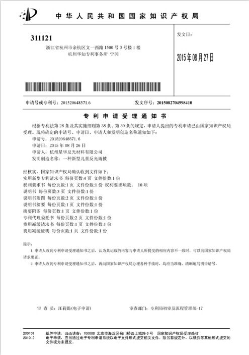 花式反光圖案層的顏色為銀灰色或彩色,花式反光圖案層為銀灰色時(shí),圖案位置反光亮度大于100cd/(lx?m2)。