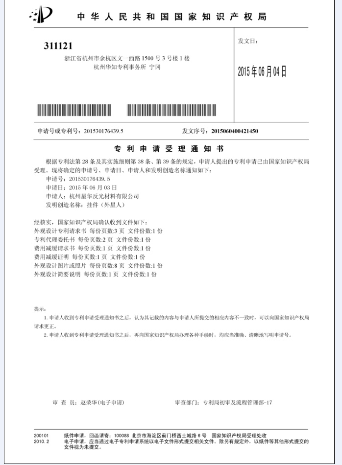 專利受理通知書: