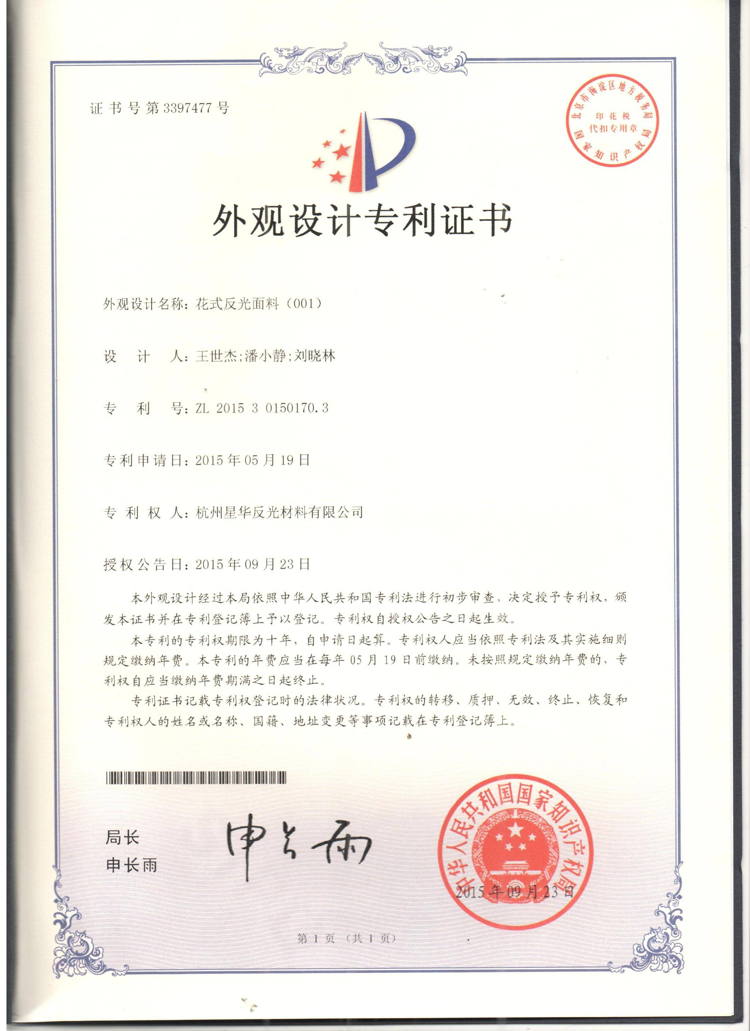 花式反光面料001-實(shí)用新型證書(shū)(十字星圖案)